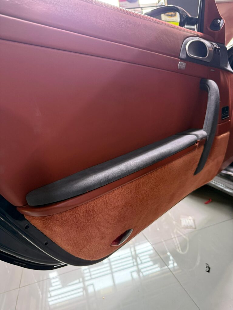 The original leather on the door panels and center console had deteriorated over time, affecting the luxurious feel of this iconic sports car. Our expert team recommended a custom Alcantara replacement, known for its elegant texture and high durability.